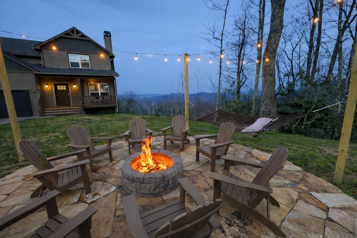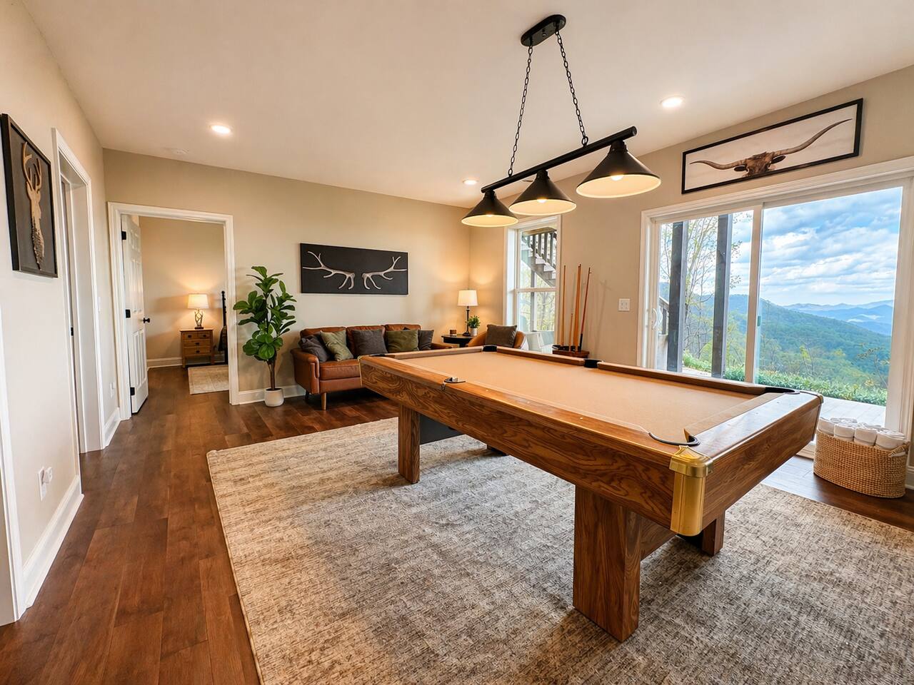 If you’re planning a trip with family or friends and want space, privacy, and unforgettable views—this is the one. Brand new luxury mountain retreat on 6 private acres at 4,300 ft in gated Settlers Ridge (Waynesville, NC). Unmatched long-range mountain views from nearly every room. Sleeps 18 with 5 bedrooms + bunk room, private theater, game room, pool table, kitchenette & hot tub. Massive flat yard, fire pit, hammocks & decks—built for unforgettable group getaways. Book your mountain escape.
