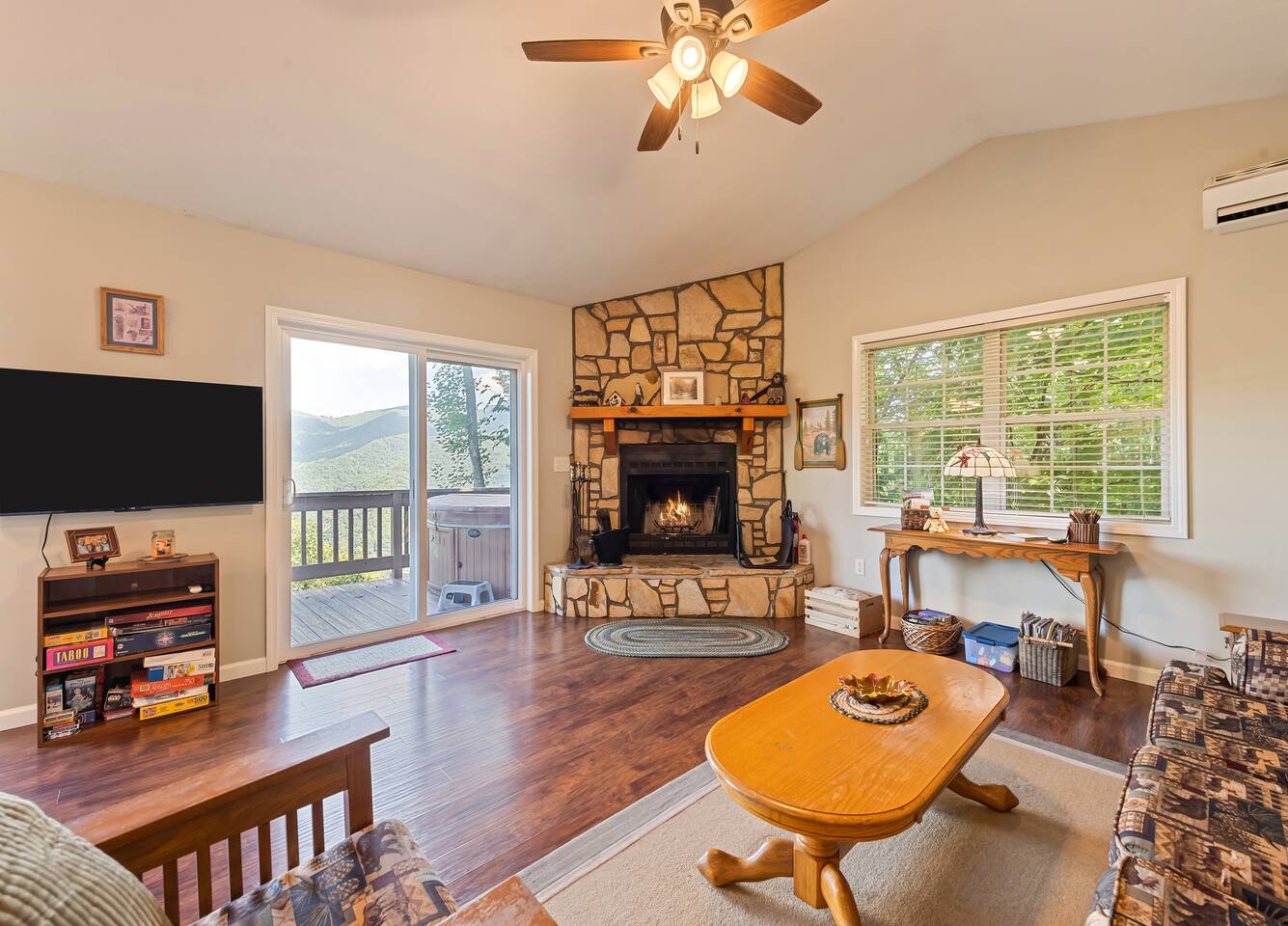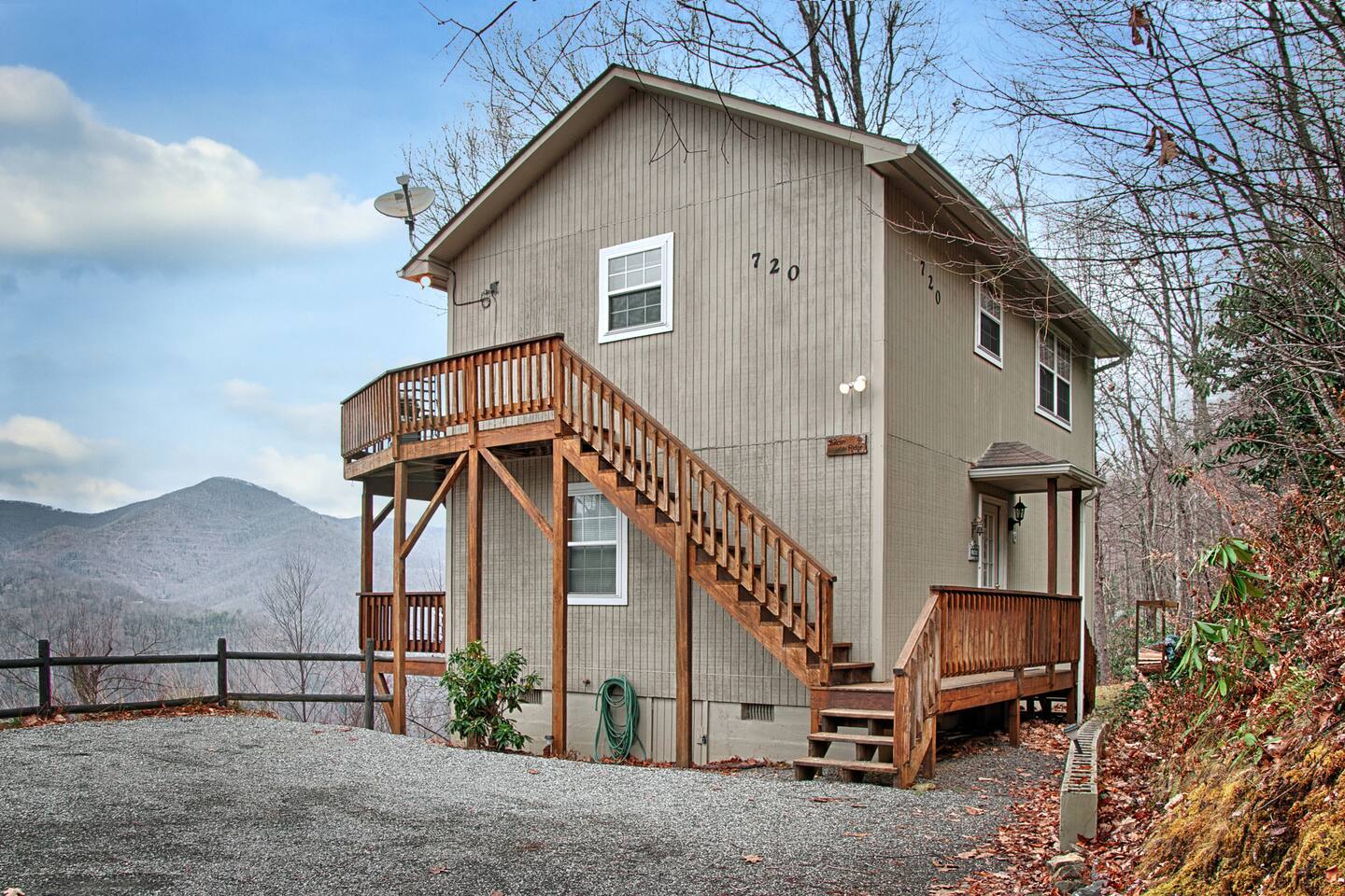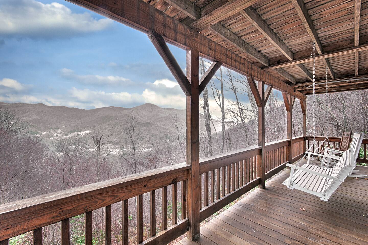 Escape to Falcon Ridge, a secluded mountain retreat at 3,900 feet with breathtaking views in Maggie Valley! This cozy getaway features two master suites with private decks, a living space with lots of windows, a wood-burning fireplace, and a hot tub under the stars. Surrounded by nature, yet close to town, it’s perfect for relaxation or adventure. The final stretch of road is gravel, uphill, and has 3 switchbacks. If you’re uncomfortable with mountain roads, this may not be the best fit.