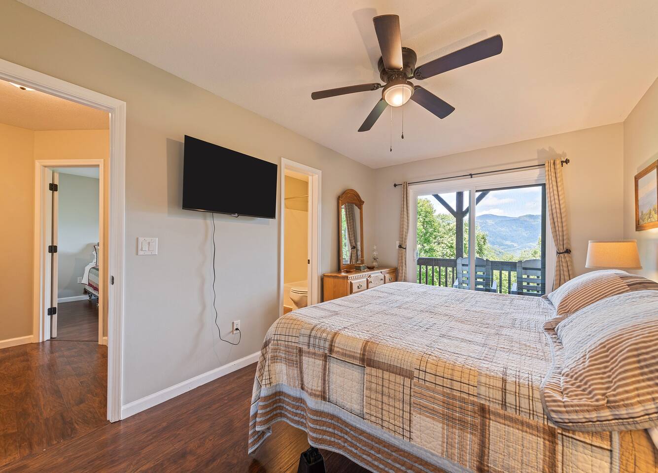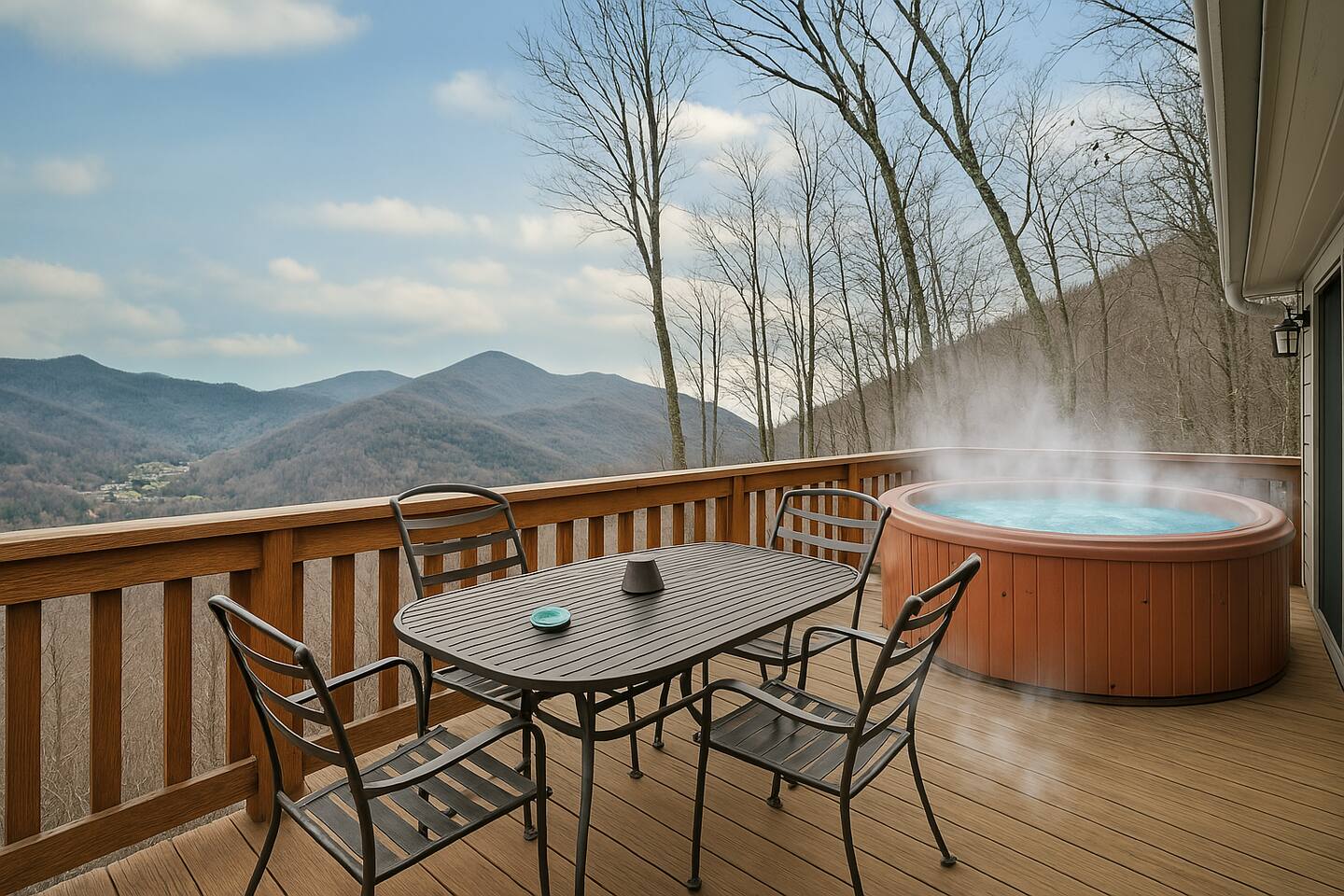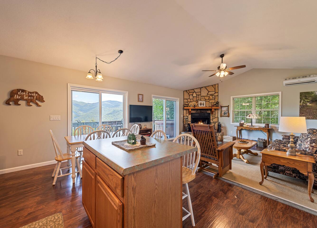 Escape to Falcon Ridge, a secluded mountain retreat at 3,900 feet with breathtaking views in Maggie Valley! This cozy getaway features two master suites with private decks, a living space with lots of windows, a wood-burning fireplace, and a hot tub under the stars. Surrounded by nature, yet close to town, it’s perfect for relaxation or adventure. The final stretch of road is gravel, uphill, and has 3 switchbacks. If you’re uncomfortable with mountain roads, this may not be the best fit.