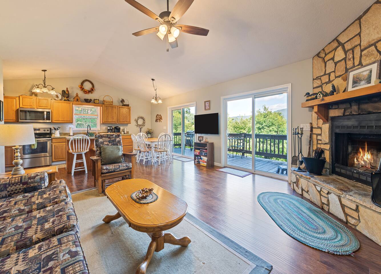 It takes approximately 5 minutes to reach US19 / Soco Road (the main road through Maggie Valley) from the house. At this point, you will be within minutes to numerous Maggie Valley restaurants and shops. The location of the home is perfect for those who want to explore Maggie Valley along with other areas such as Cherokee, Waynesville and Asheville which are a short drive. This cabin is just minutes from the Blue Ridge Parkway, Great Smoky Mountains National Park, Harrah's Cherokee Casino, Cherokee Museum, Cataloochee Ski Resort, golf at the Maggie Valley Club, The Wheels Through Time Museum, Biltmore Estate, whitewater rafting, horseback riding, fishing, gem mining, shopping, music, and more. Maggie Valley is conveniently located to provide quick access to all these activities, it is an outdoor paradise!