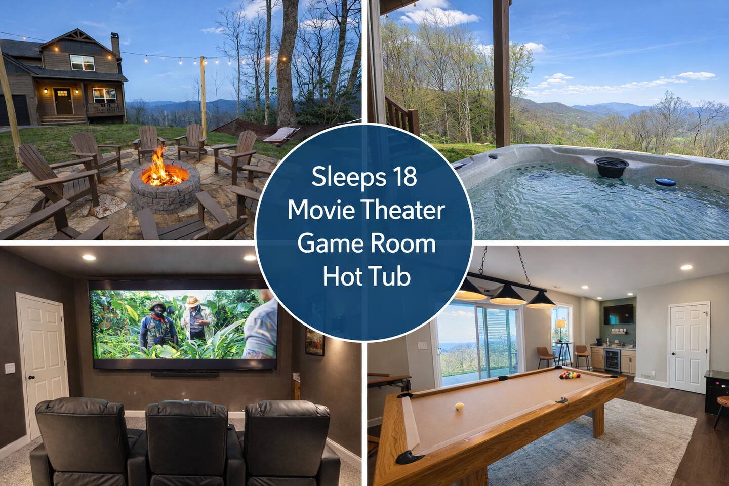 If you’re planning a trip with family or friends and want space, privacy, and unforgettable views—this is the one. Brand new luxury mountain retreat on 6 private acres at 4,300 ft in gated Settlers Ridge (Waynesville, NC). Unmatched long-range mountain views from nearly every room. Sleeps 18 with 5 bedrooms + bunk room, private theater, game room, pool table, kitchenette & hot tub. Massive flat yard, fire pit, hammocks & decks—built for unforgettable group getaways. Book your mountain escape.