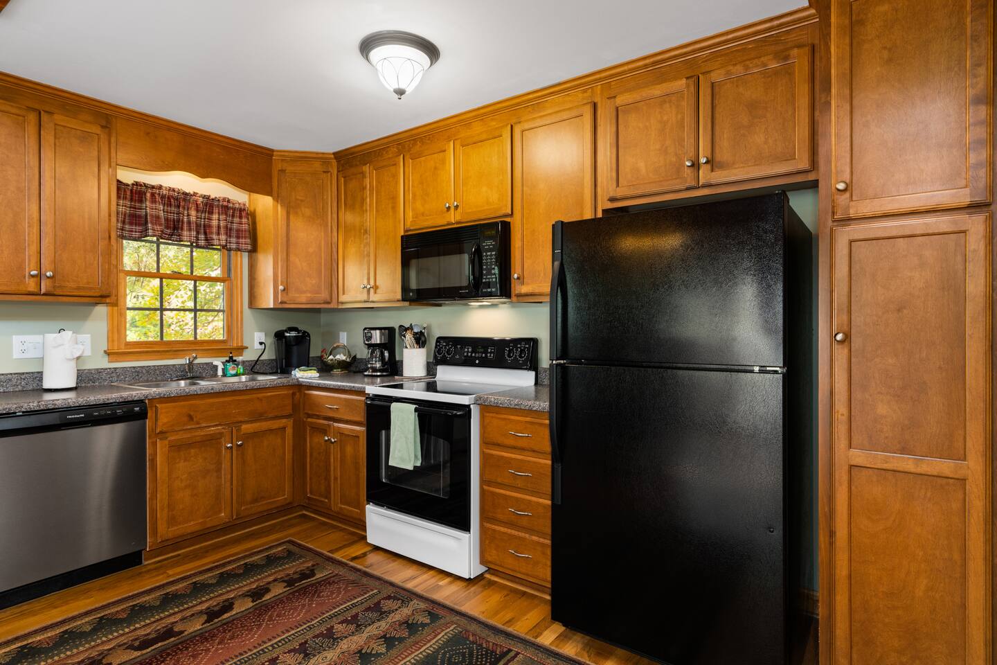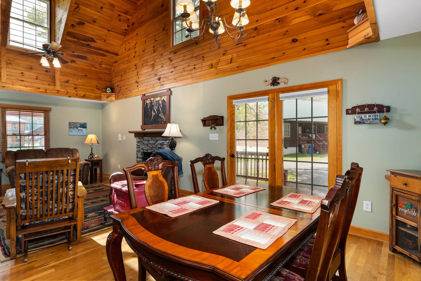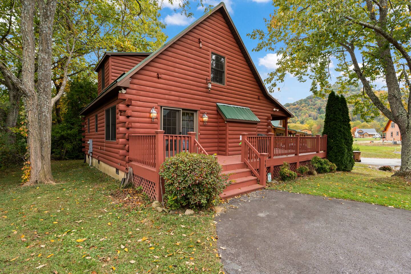 Cabin is located in a neighborhood with paved streets. There is a large driveway that can easily fit multiple cars. The home is conveniently located in the heart of Maggie Valley.