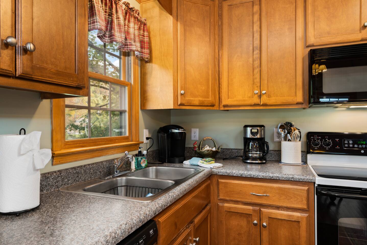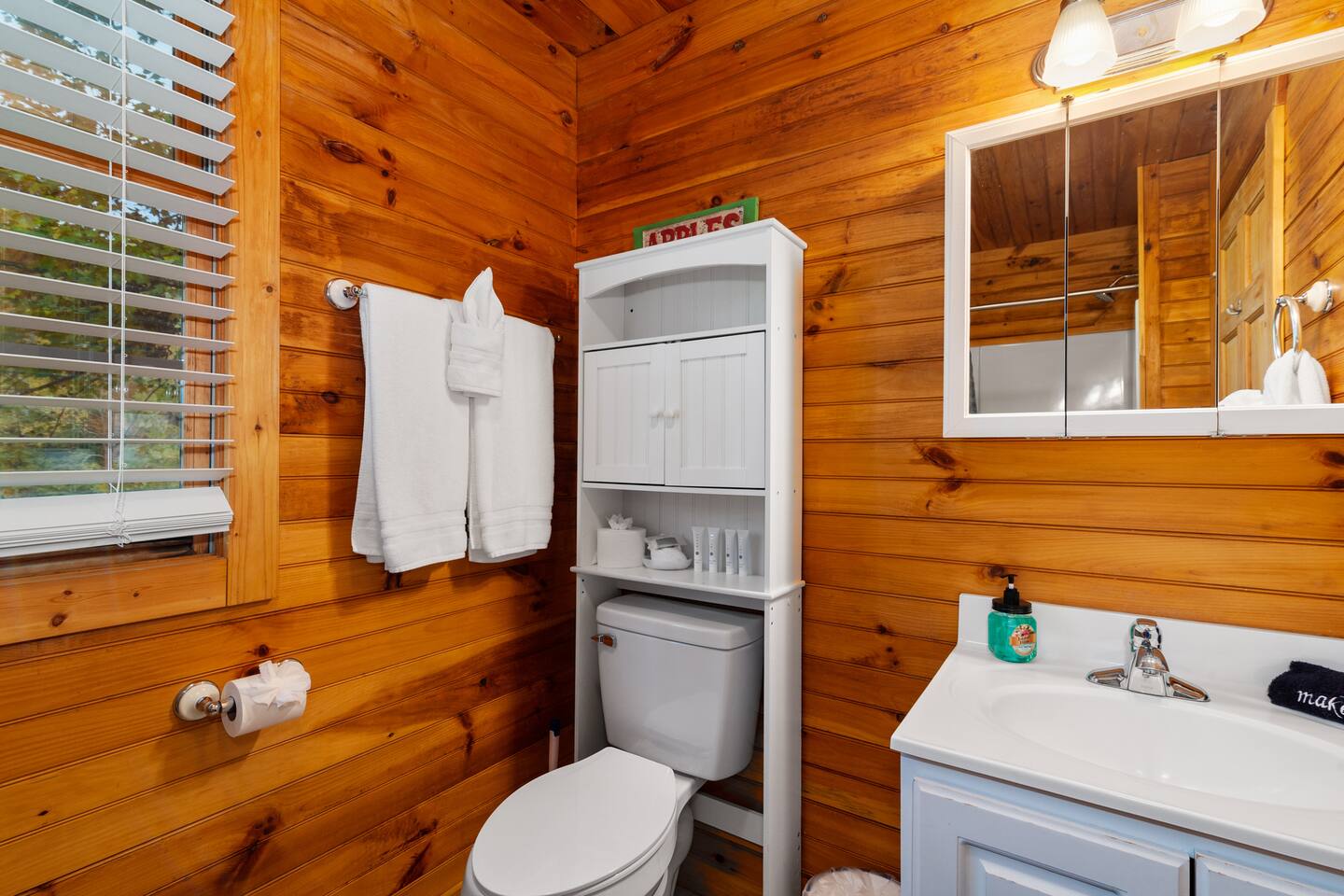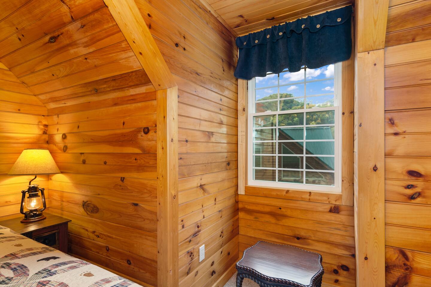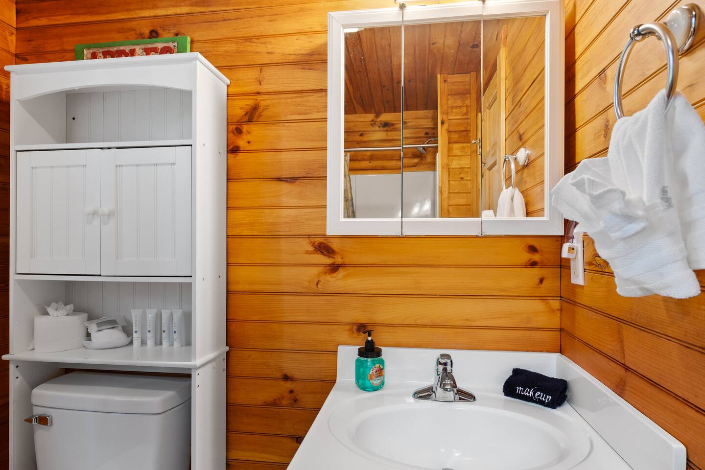 Cabin is located in a neighborhood with paved streets. There is a large driveway that can easily fit multiple cars. The home is conveniently located in the heart of Maggie Valley.